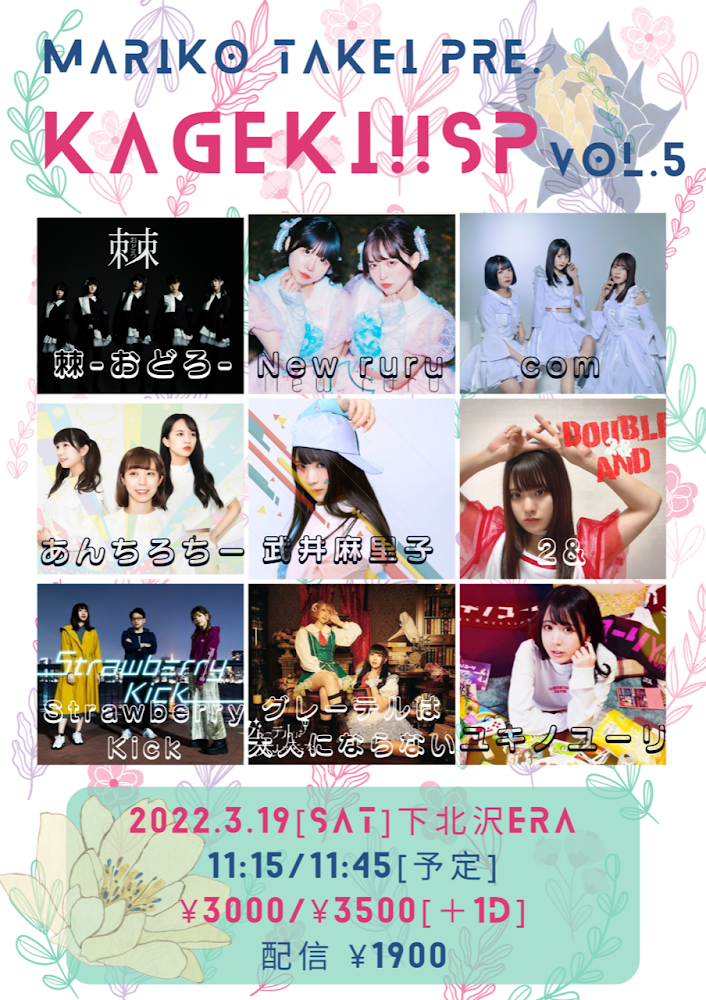 KAGEKI SP!! vol.5 SCHEDULE 2022/03/19(土) 11:15 - 下北沢ERA 2022/3/19(土) 📍下北沢ERA OPEN11:15/START11:45 ADV¥3000/DOOR¥3500(+1D) 配信¥1900 配信チケット チケットはこちら URLをコピーする 報告する